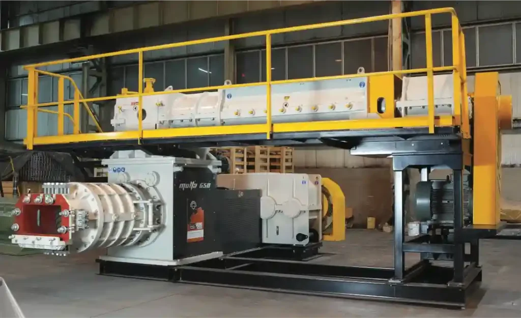 Tuğla ve kiremit üretiminde ham maddeye mamul şeklinin verilmesini sağlayan son makinedir. Makine esas olarak iki ana bölümden oluşur. Birinci bölümde ( üst makine ) çamur, karıştırılarak yoğrulur. Daha sonra vakum kamarasından geçirilerek içindeki havanın emilmesi sağlanır ve bastırıcı çapalarla alt makine dediğimiz ikinci bölüme sevk edilir. Burada vakumlanmış çamura makine boğazındaki kalıp vasıtasıyla istenilen tuğlanın şekli verilerek çıkarma işlemi tamamlanır. Makine parkının pozisyonuna göre üst ve alt makine, istenilen şekilde monte edilir.